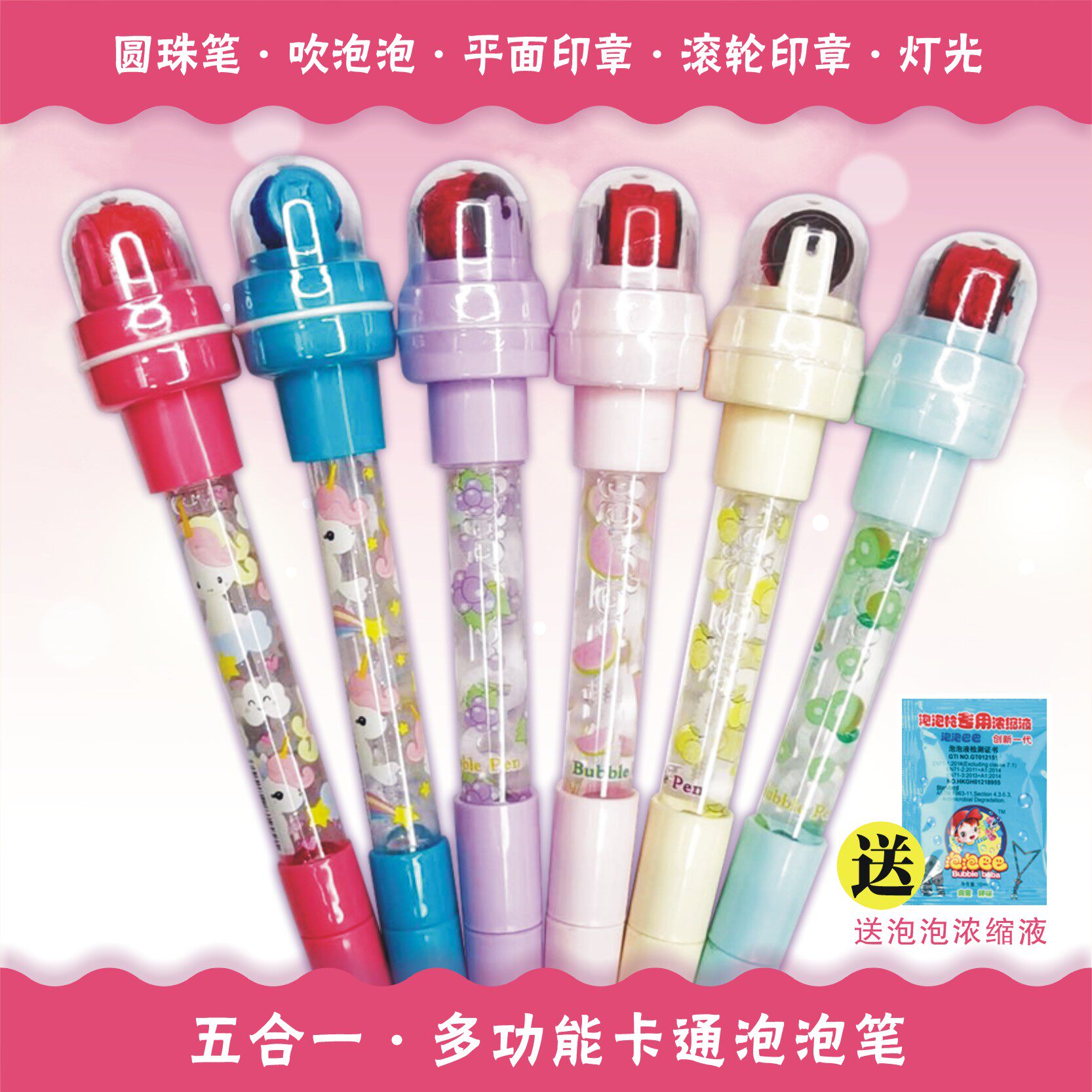 Magic pen multi-function cartoon seal bubble pen shaking sound with the same multi-function princess four-in-one luminous magic pen Magic girl children