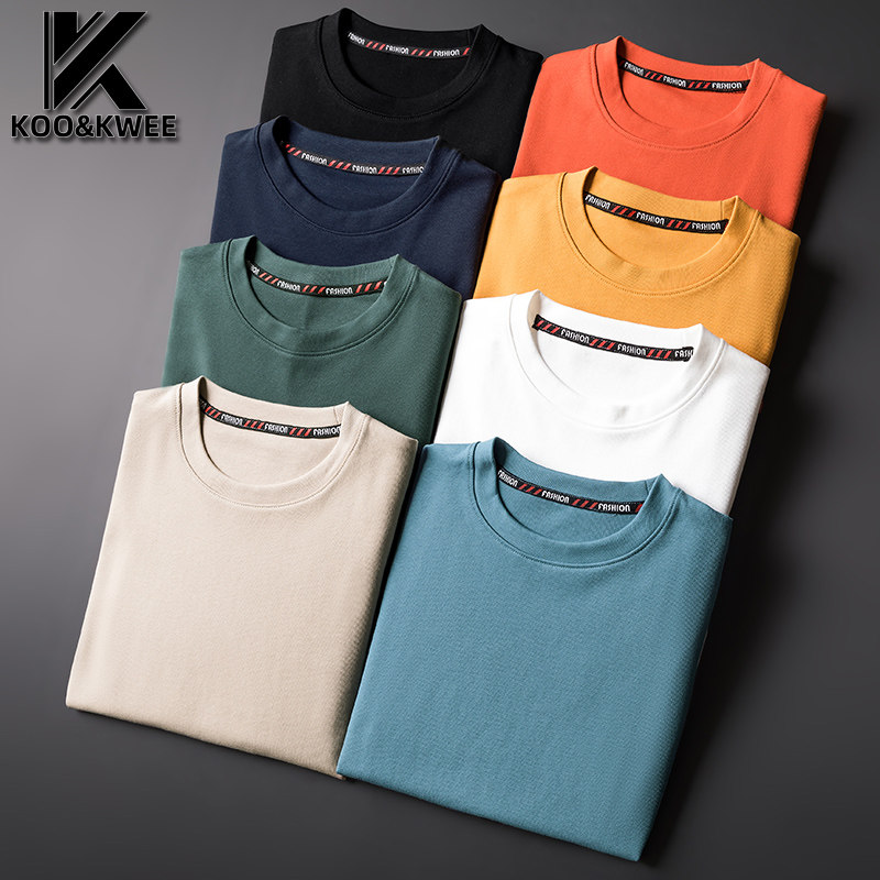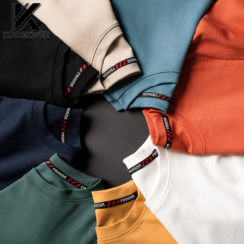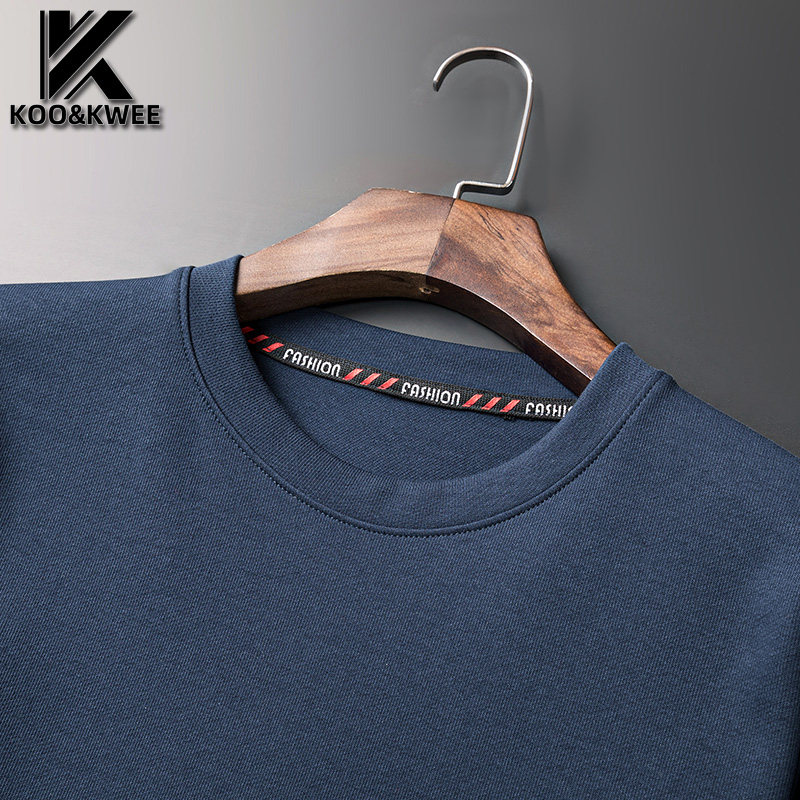 Round collar pure color T-shirt male long sleeve autumn winter plus suede thickened minimalist white black beat undershirt male dress jacket