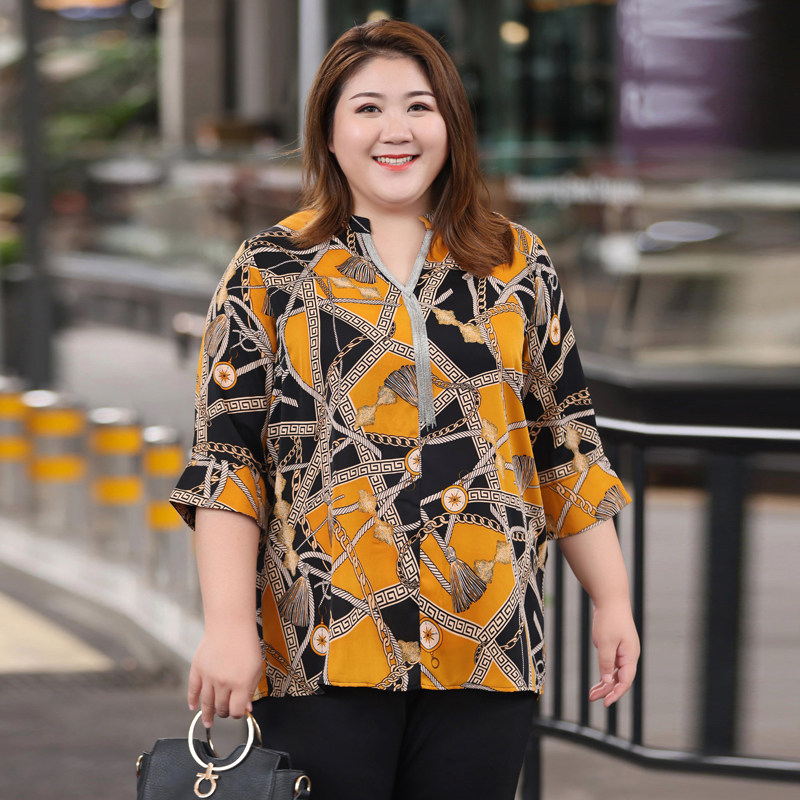 2022 new summer clothes middle-aged women's fat moms plus mast size 200 catty snow-spinning upper clothes