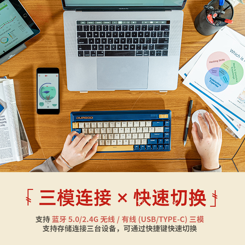 DUGOD DUGA FUSION WIRELESS BLUETOOTH 2 4G THREE MODELS 60% MECHANICAL RETRO KEYBOARD 68 KEY ELECTRIC RACE GAMES OFFICE CHERRY MUTED RED SHAFT GREEN TEA SILVER SHAFT COMPUTER IPAD BLUETOOTH