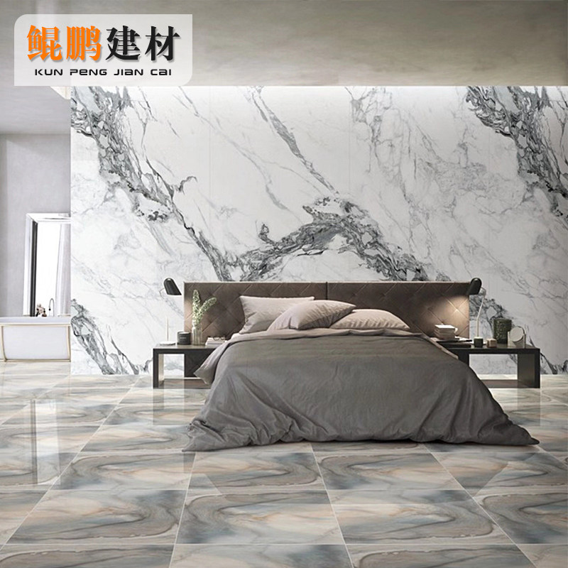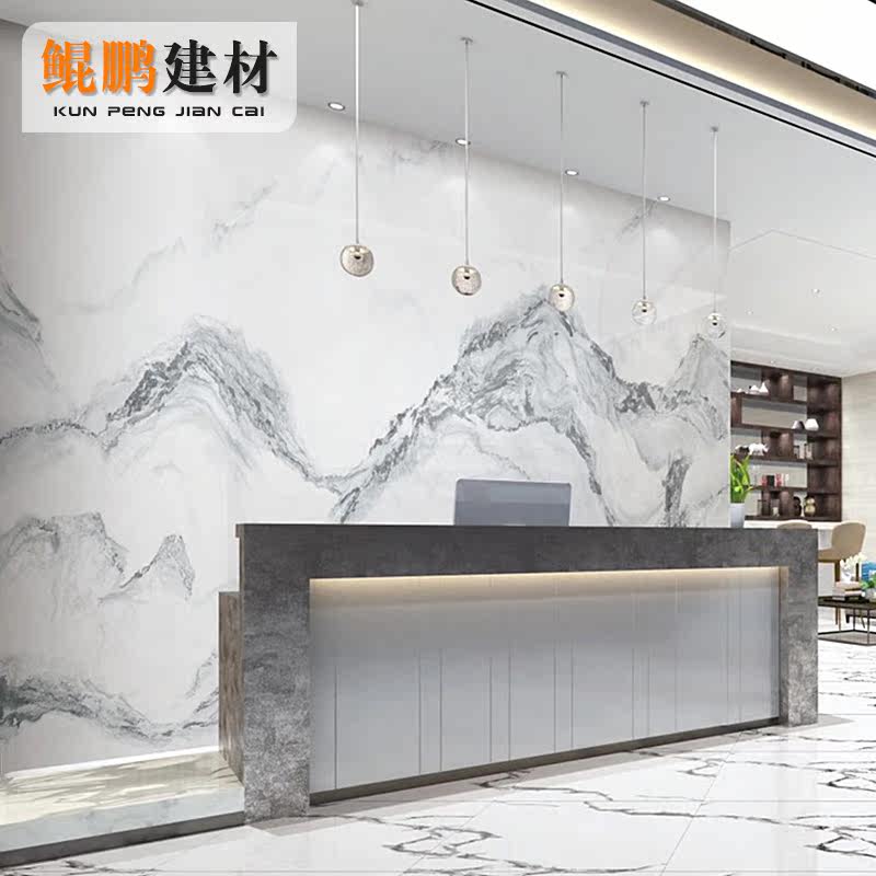 Living room TV background wall oversized slab with pattern tile 1200*2400 high-end luxury villa wall brick rock slab