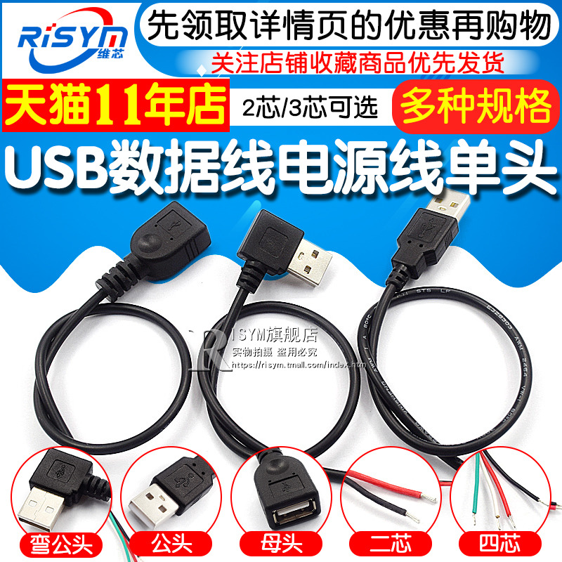 USB data line power cord single-head 2-core 4-core USB wire fan fluorescent plate LED light bar male head power cord
