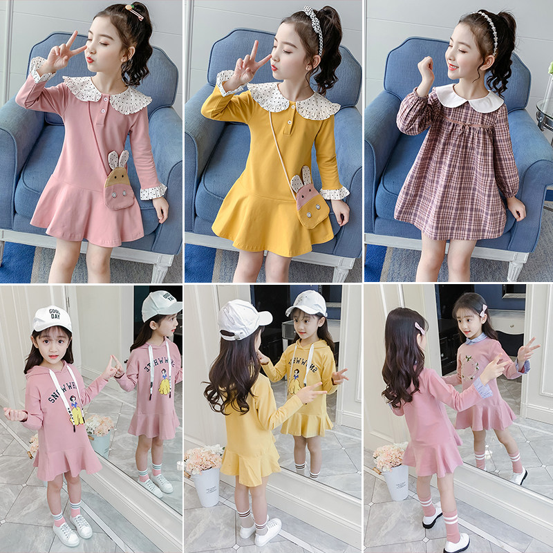 Girl autumn dress 2021 New Korean fashion Children's princess dress female baby long sleeve sweater skirt