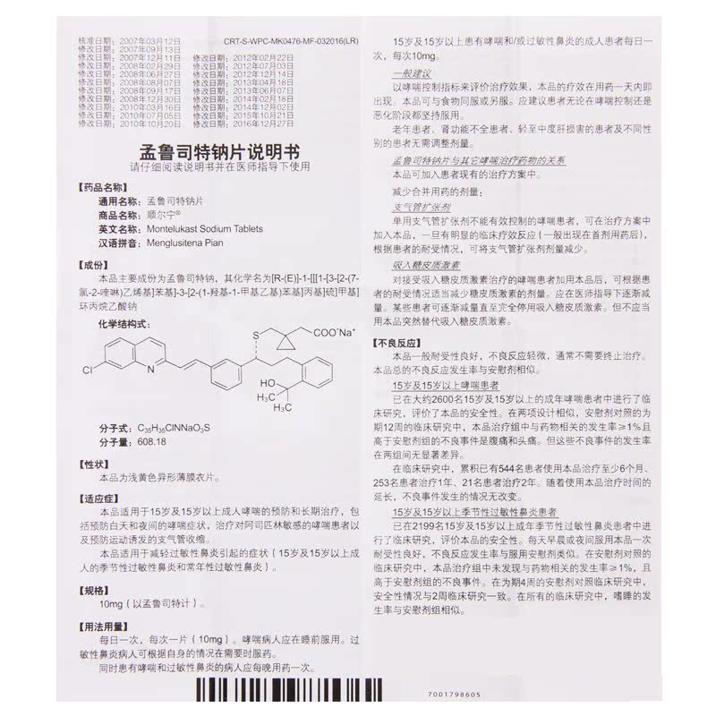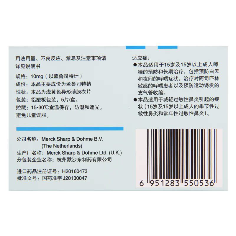 Mask delivery)Shenlin Mengruste sodium tablet 10mg*5 tablets to prevent and treat filial gasp and allergic rhinonitis non-smooth and tranquillity to the millennium Sterner Drunrust Turner
