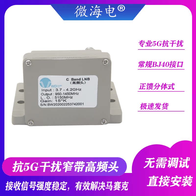 Anti-5G interference filtering receiver solves mosaic positive feed two-piece C-band receiving head
