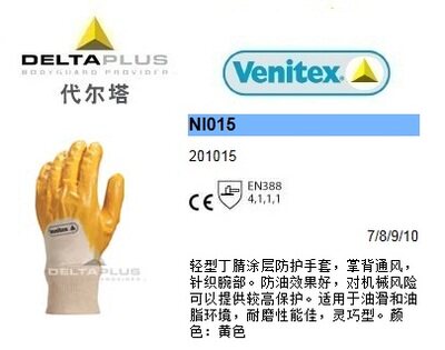 Delta 201015 Coated Gloves Wear resistant and slip - resistant operation gloves waterproof and oil protection protection gloves work