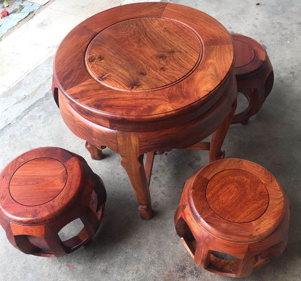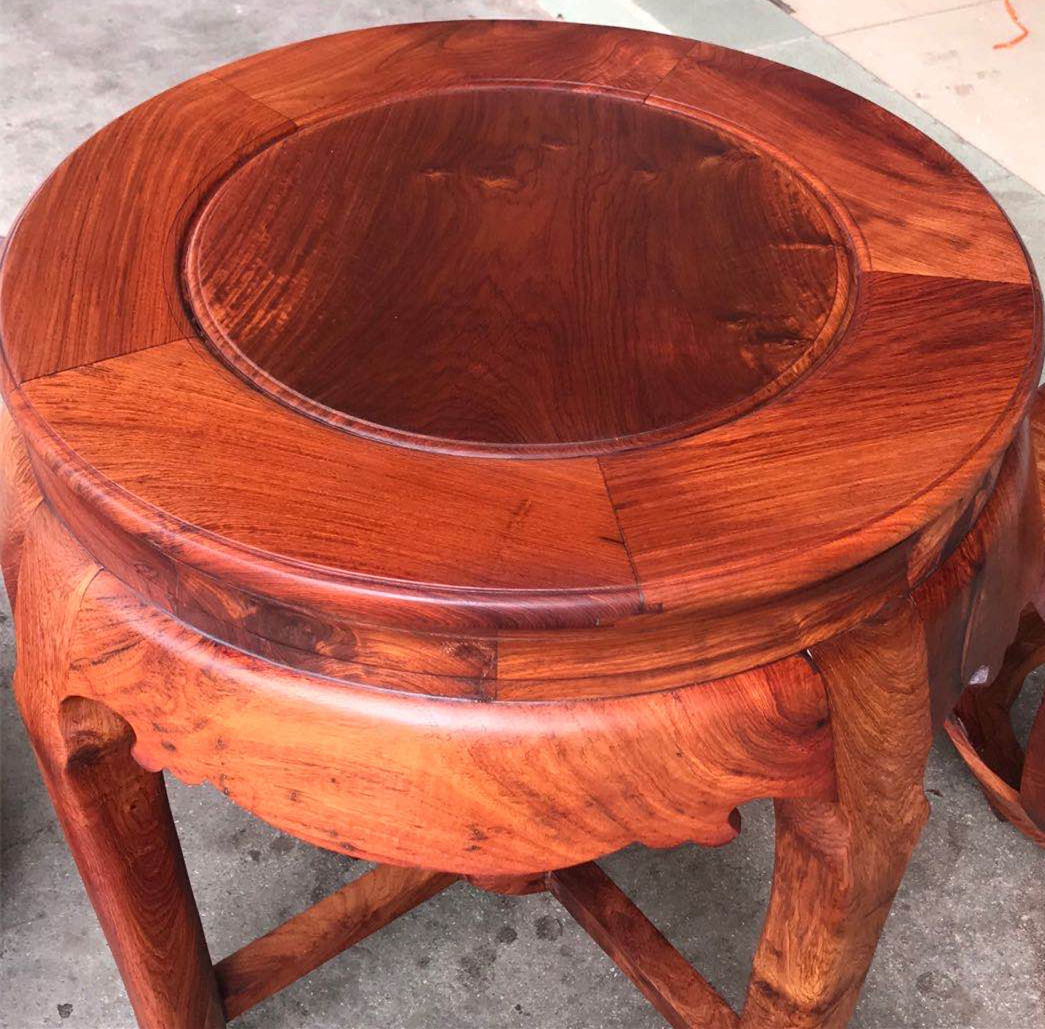 Myanmar flower pears small round table Myanmar flower pear mortise and drum stool rough grinding Myanmar flower pears mortise and tenon mortise and drum stool finished Myanmar flower pears small round table five pieces