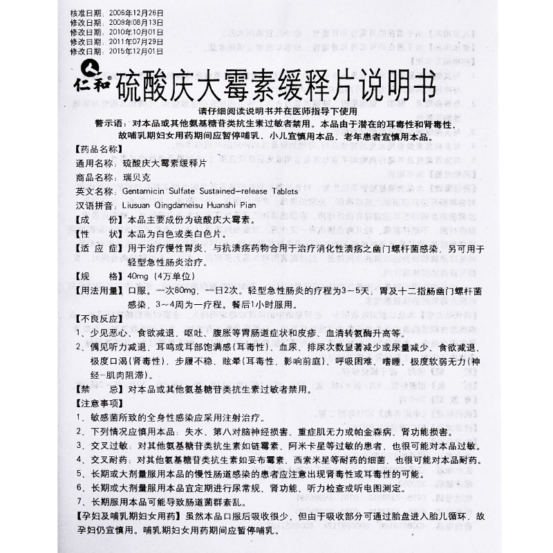 Jen And Rebbeck Sulphuric Acid Gentamycin Slow Release Tablets 40mg * 24 Sheet boxes for the treatment of chronic gastritis with ulceration of ulcerative ulcerative ulcer of pylori