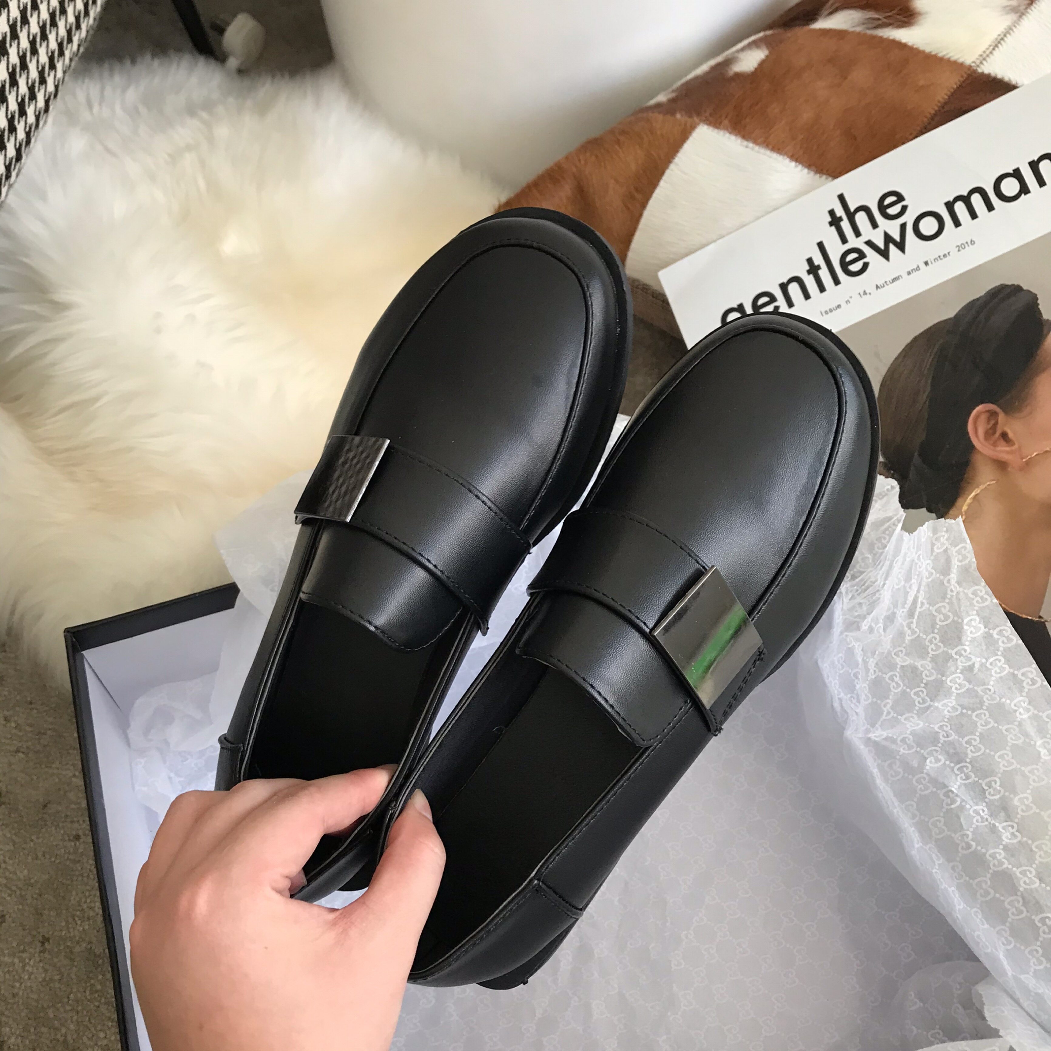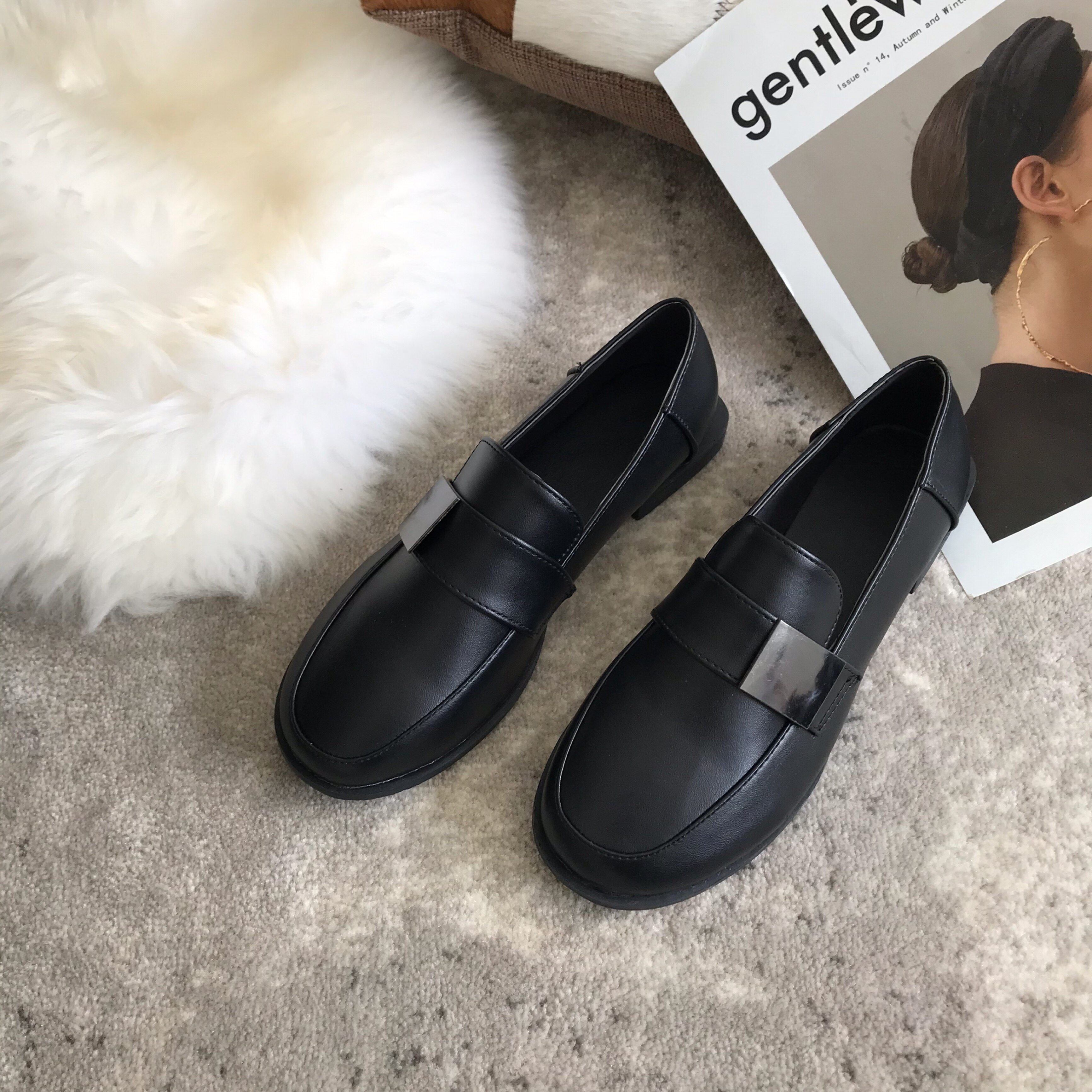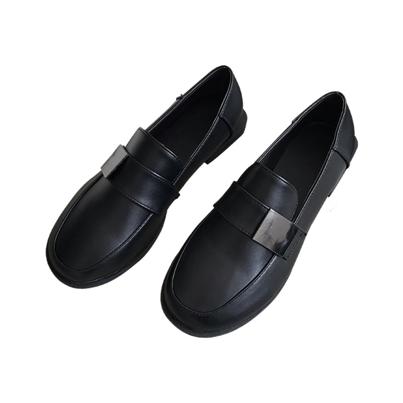 Single shoes women's all-match British black small leather shoes flat 2022 new loafer shoes a pedal ins work shoes
