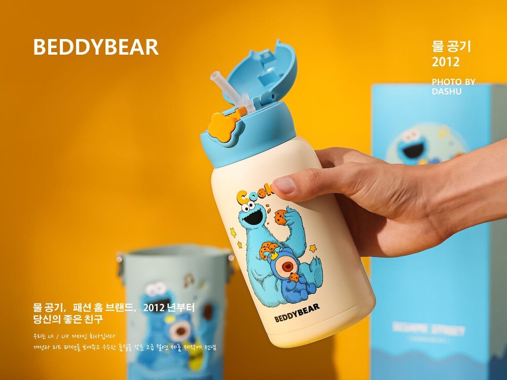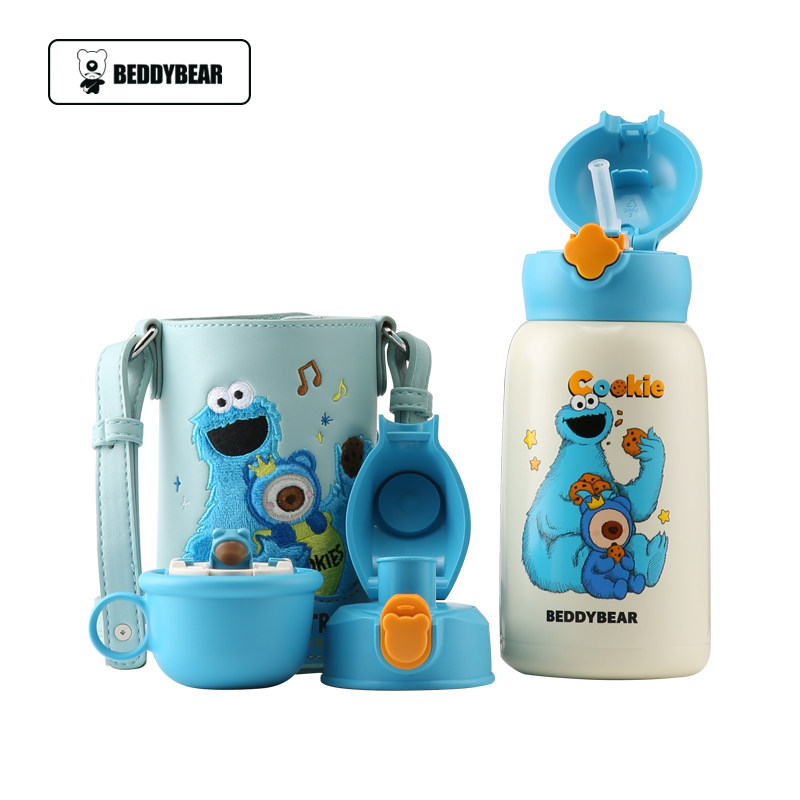 Cup with Bear Sesame Street Children Insulated Cup With Straw Triple Water Cup Men And Women Nursery School Students Baby Kettle