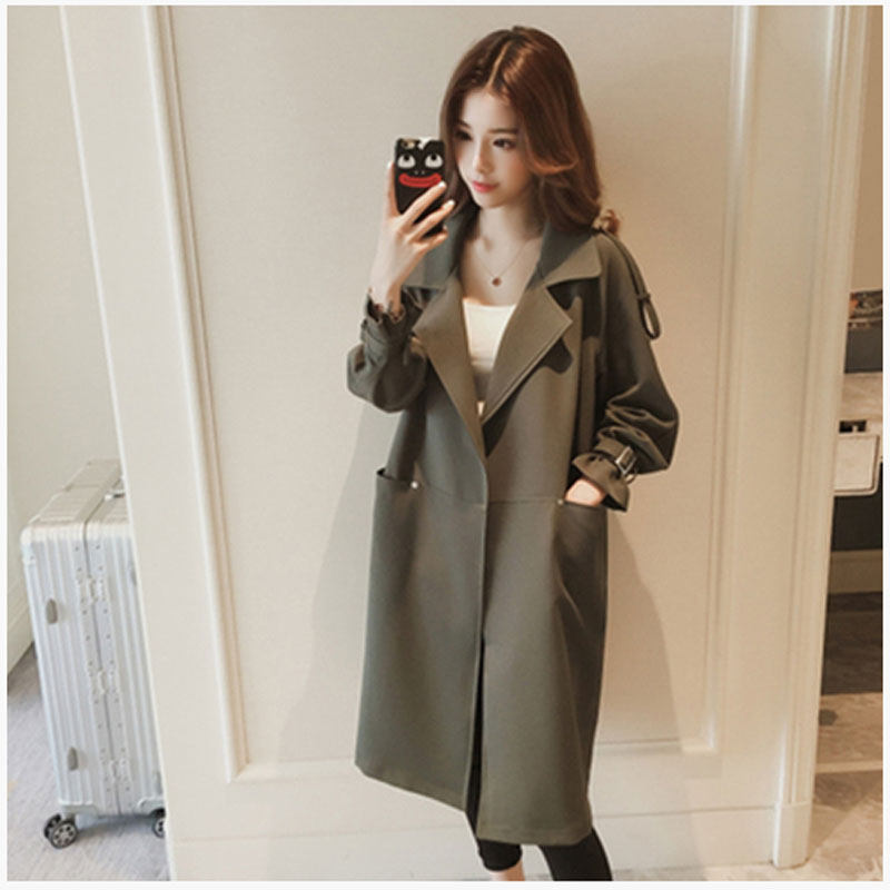 Maternity Autumn Coat 2021 Korean Edition Maternity Loose Suit Fashion Temperament Simple Mid-Length Over-the-Knee Trench coat
