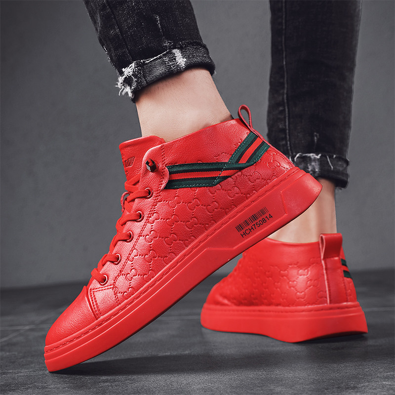 European station men's shoes autumn net red tide brand hip-hop red high-top shoes Korean version of the little red shoes hair stylist Martin boots men