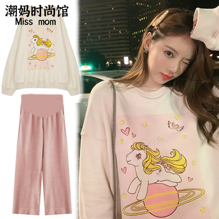 Pregnant woman pants fall outside wearing long pants wide-legged pants pregnant women's autumn clothing suit stylish style spring and autumn money net red two sets
