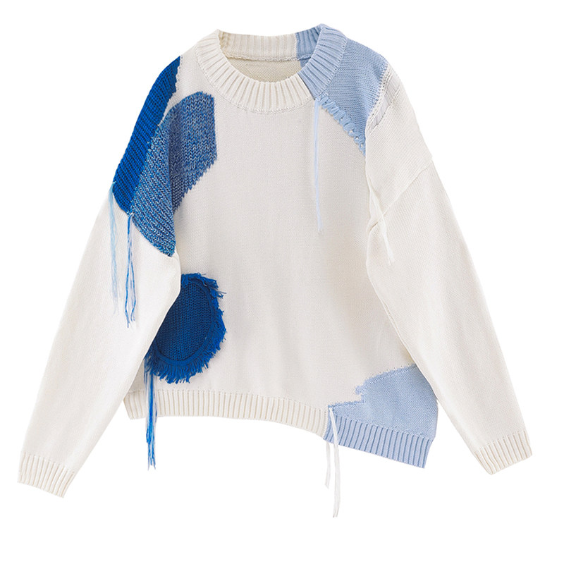 Blank palette) Irregular Soft Waxy Sweater Women's Design Sense Niche Gentle Retro Autumn and Winter Lazy Style