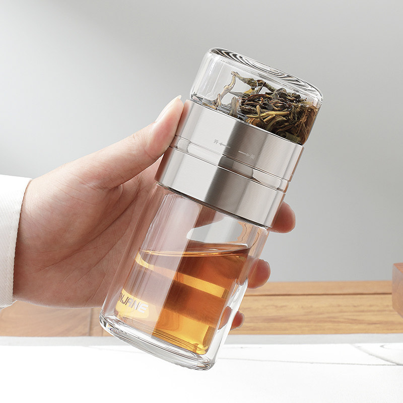 Complex Tea Water Separation Glass Cup Men's Transparent Cup Portable Tennis Red Korean Version Tea Cup Mini Home Water Cup