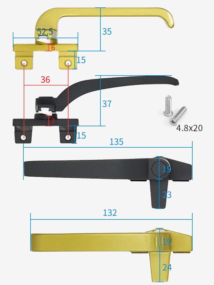 Type 38 aluminum alloy windows handle old flat open color aluminum doors and windows handle lock 7 words handle single point of lock accessories