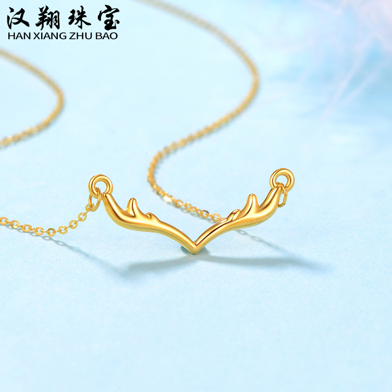 Gold Necklace Female 5D Hard Gold Auspicious Deer Gold Set Chain Full Gold 999 Gold Necklace Pure Gold Chain Gold Chain