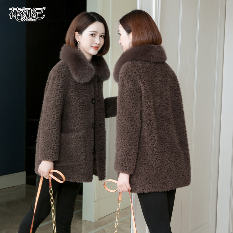 Henning Sheep Cut Suede Big Coat Woman Medium Long Version 2021 Autumn Winter New Fox Fur Collar Grain Flannel Wool Leather Grass Jacket