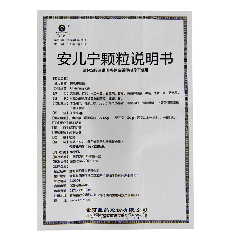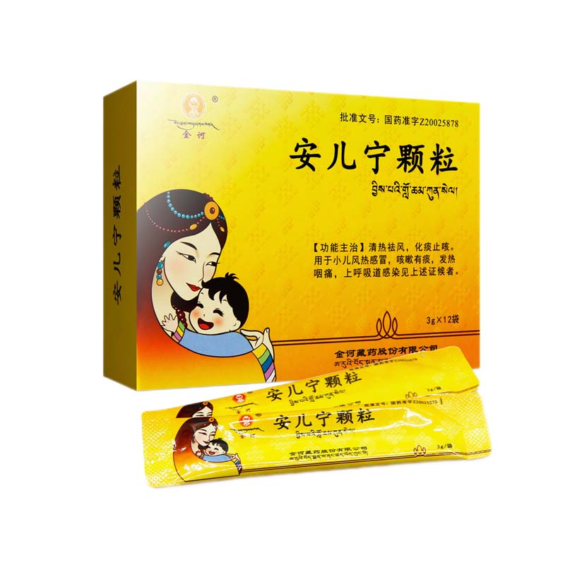 ) Jinhe An'erning Granules 3g*12 bags Box Clearing heat and expelling wind, reducing phlegm and relieving cough, children with wind-heat cold, cough with phlegm, fever, sore throat, upper respiratory tract infection, reducing phlegm and relieving cough, clearing heat