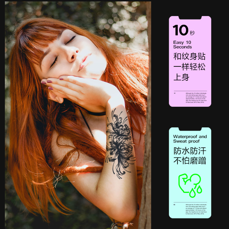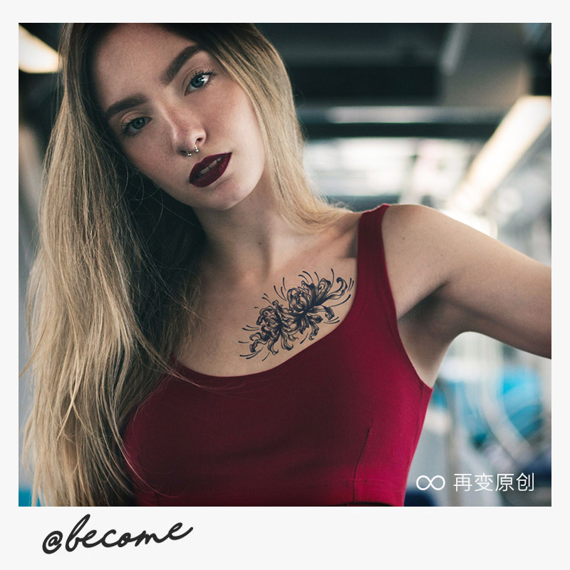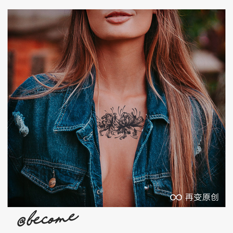 Remake Man Zhuhua Two weeks herbal tattoo Tattoo Stick floral arm stickers Waterproof Female Persistent bank Flower juice 23-Taobao