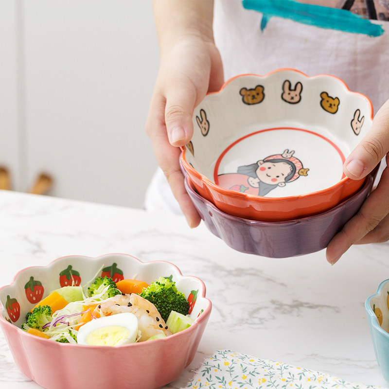 Ceramic Bowl Fruit Salad Bowl Strawberry Bowl Creativity Cute Teenage Girl Hearts Dessert Bowls Cutlery Microwave Oven Special