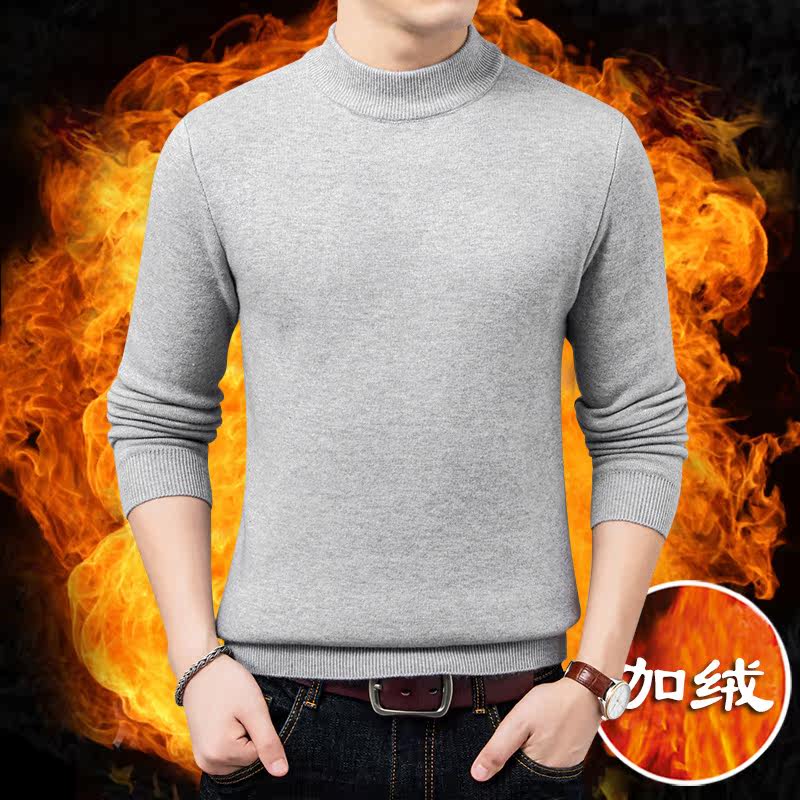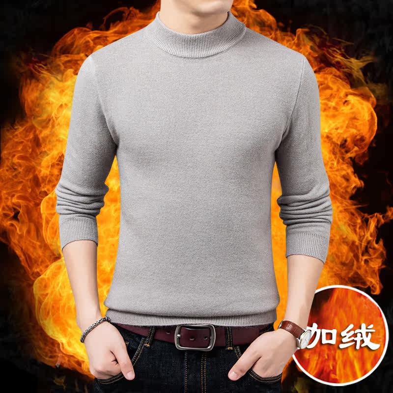 Autumn and winter fleece thickened men's knitted sweater half turtleneck sweater slim bottoming shirt men's solid color warm sweater