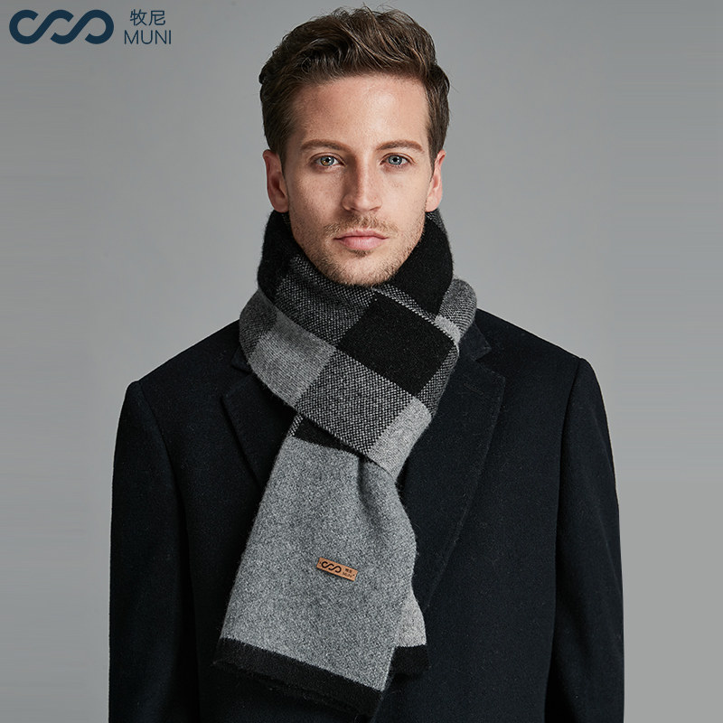 Muni upscale 100% pure cashmere scarf men's winter luxury Joker plaid warm scarf birthday gift box