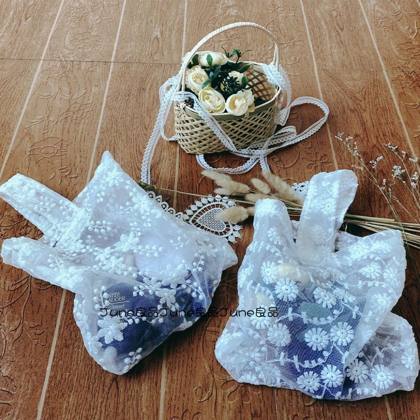Korean Lace Tote Bag Walking Curve Bag Picnic Shopping Shopping Storage Bag Mesh Embroidery Cute Open Small Bag