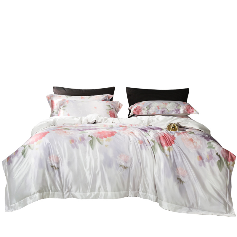 Real Silk Four Pieces 100% Mulberry Silk Bed Upper Supplies Wide Silk Chinese Home Textiles Genuine Silk Bed Goods Kit