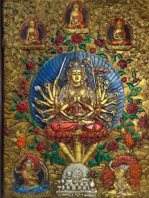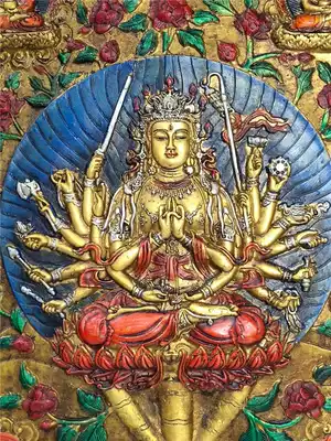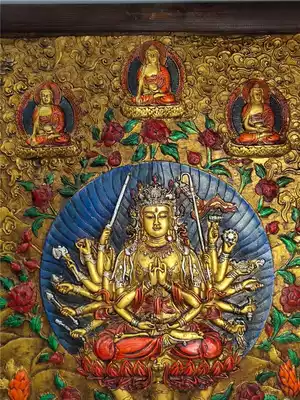 Old Tibetan wooden frame painted Tibetan Thangka Buddha statue Tantric Buddha Statue Zhunti Buddha mother Bodhisattva please worship Buddha statue hanging painting