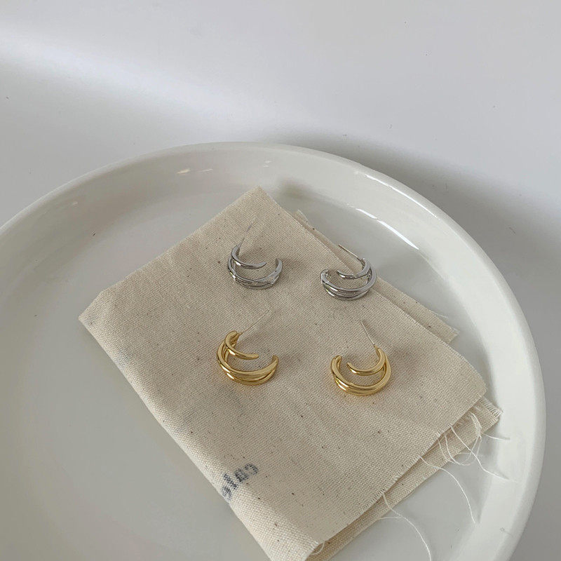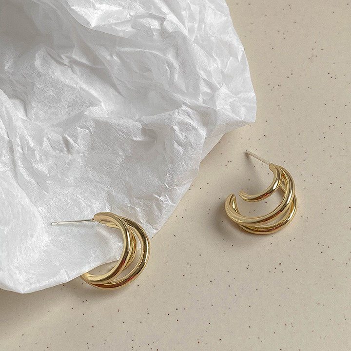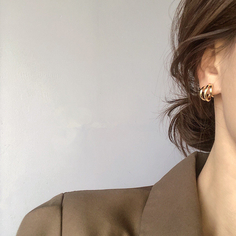 Three-layer high-end geometric earrings gold single three-layer high-end geometric earrings white gold single three-layer high-end geometric earrings gold pair three-layer high-end geometric earrings white gold pair