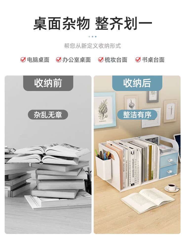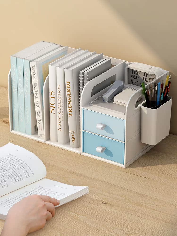 Bookshelf (gradual blue) with pen holder Bookshelf (gradual powder) with pen holder second-layer storage box (Ballet powder) second-layer storage box (spruce blue) second-layer storage box (gradual layer blue) with pen holder second layer