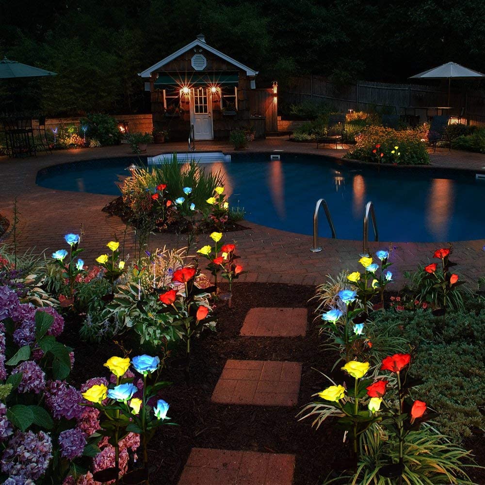 led solar flower lamp rose flower lamp inserted into the ground outdoor waterproof garden villa courtyard real estate decoration lawn lamp