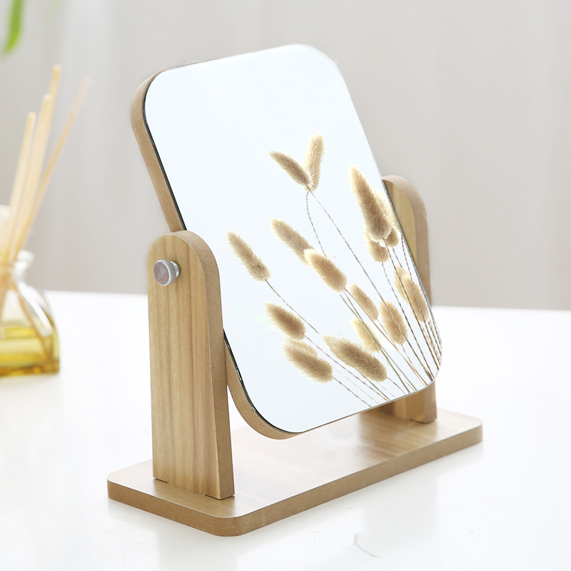 HD wood large desktop makeup mirror ins simple rotating folding desktop mirror student dormitory dresser mirror