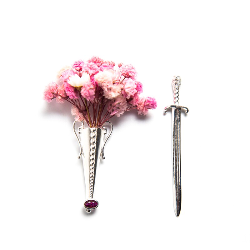 Great Detective Polo's Vase Retro 925 silver brooch Men and women can replace the bouquet of the bouquet with a large coat of clothing and accessories-Taobao