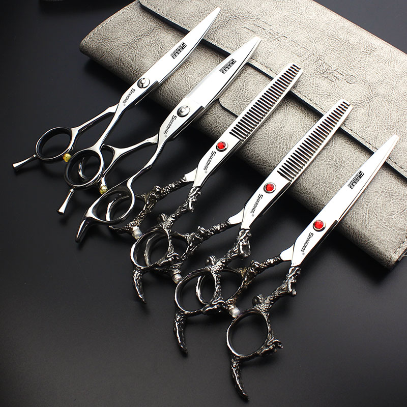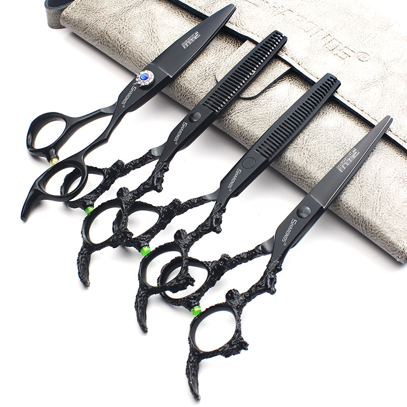 Black dragon handle 6-inch four-piece set, free leather oil wax hand black dragon handle 6-inch three-piece set black dragon handle 6-inch V-tooth tooth scissors set black dragon handle 6-inch flat cut black dragon handle 6-inch V-tooth tooth scissors silver dragon handle 6