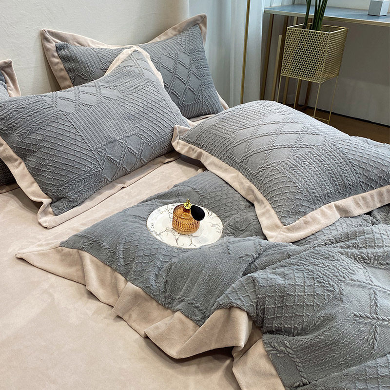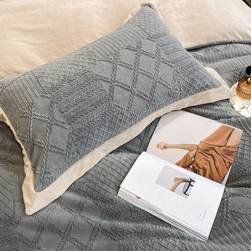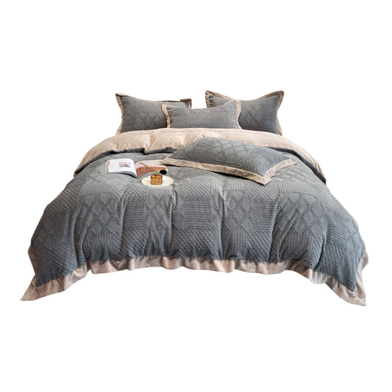Autumn Winter Milk Suede Plus Suede Thickened Warm Coral Suede Four Pieces Of Kit Minima Soft Quilt Cover Double Bed Home-Taobao