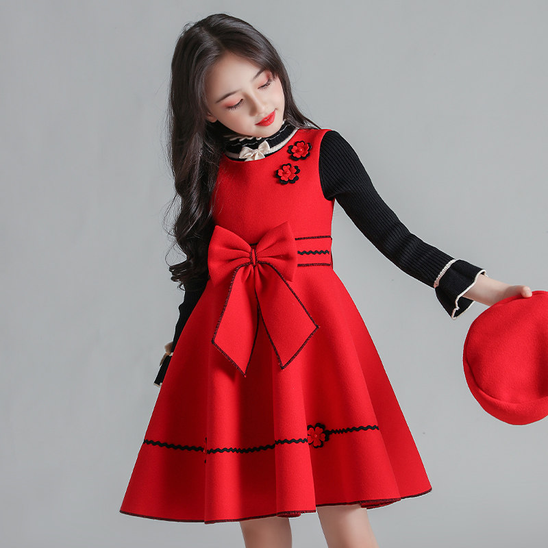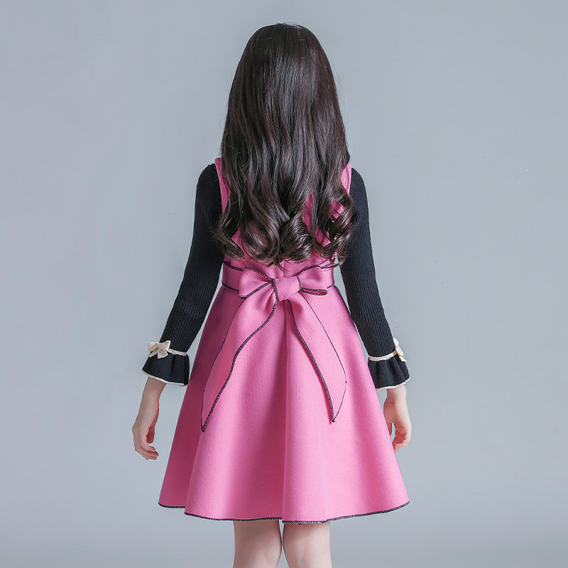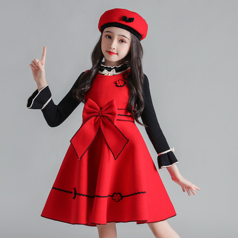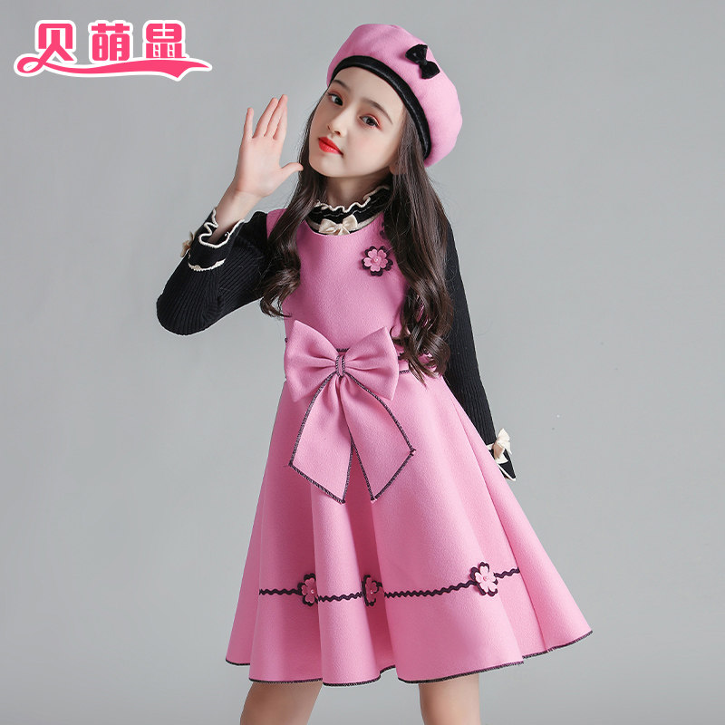 Girl woolen suit dress 2022 spring and autumn Net red woolen vest skirt two-piece Children's princess skirt