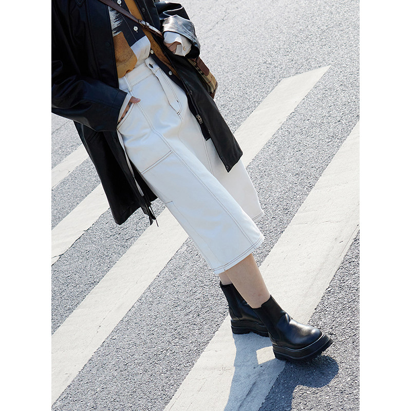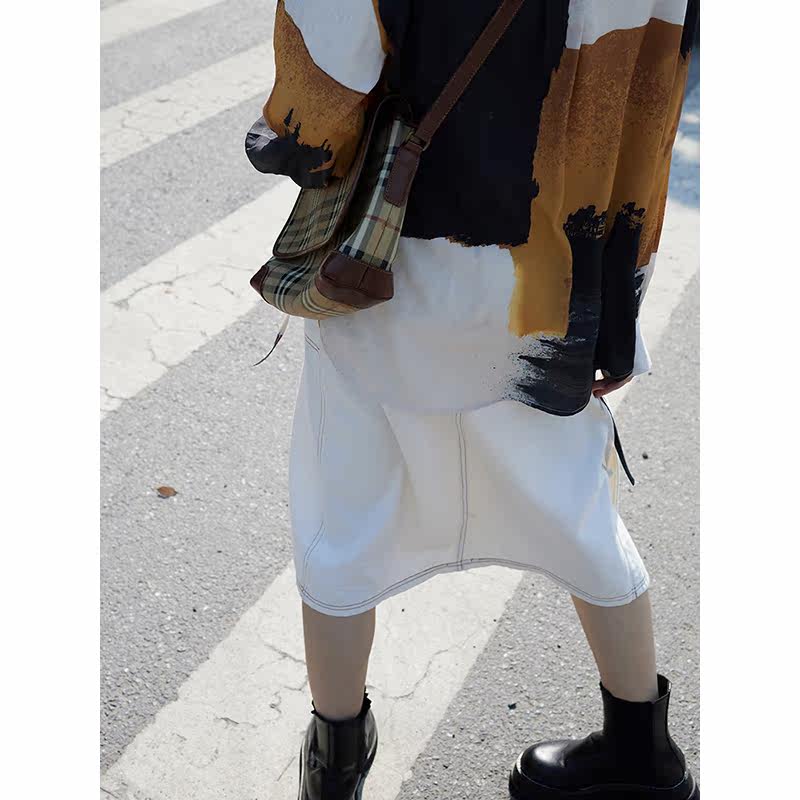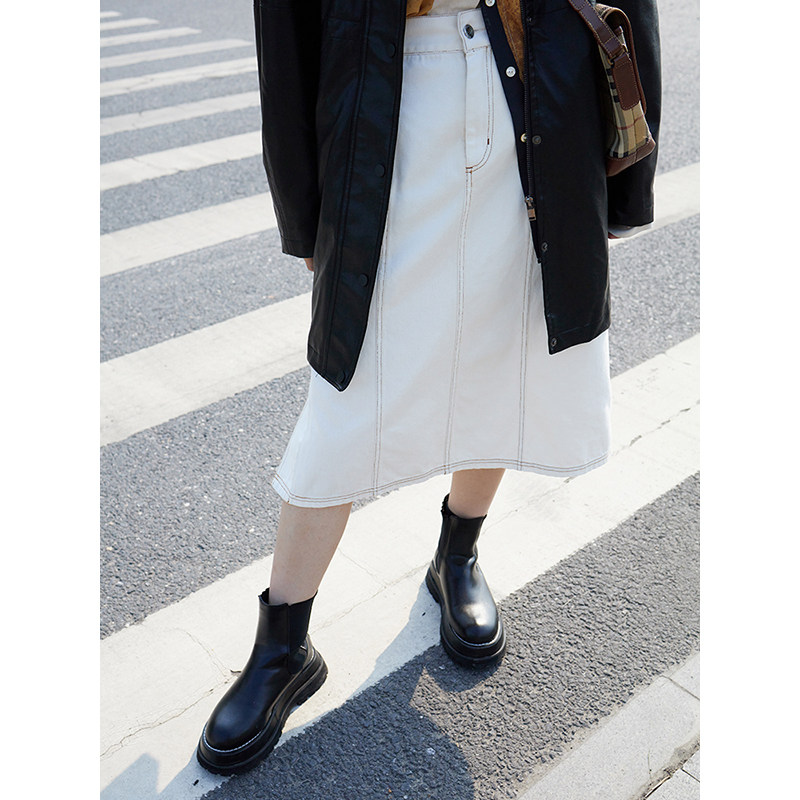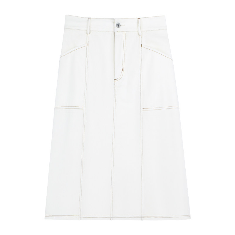 GUOE 20AW plain white denim denim retro high waist a-line thin casual denim skirt women's mid-length