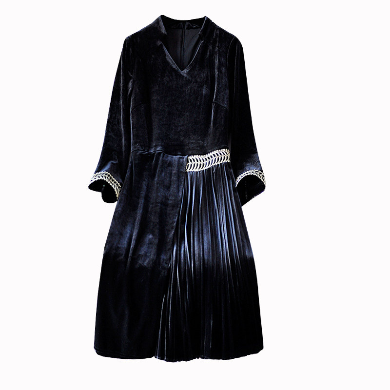 Highly recommend a different kind of exquisite 2020 autumn new vintage pleated V-neck velvet slim dress dress