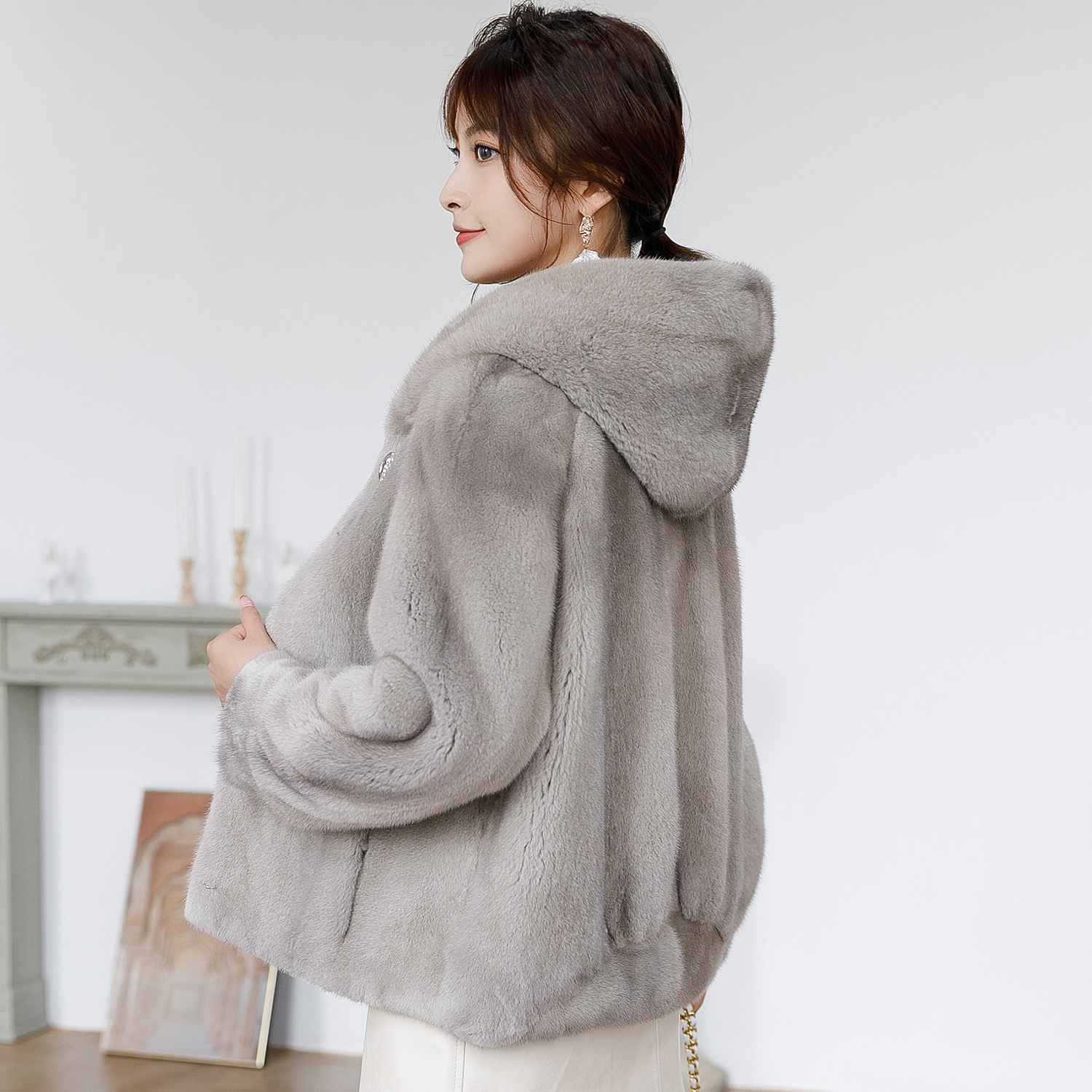 Winter 2021 new imported mink coat women's whole mink hooded fur fashion short mink fur coat