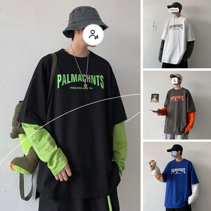 Lnkdye Boys Wear Hitch Spring Tide Letter Printed Blouse Clothes Loose Splicing Round Collar Fake Two Weater Men