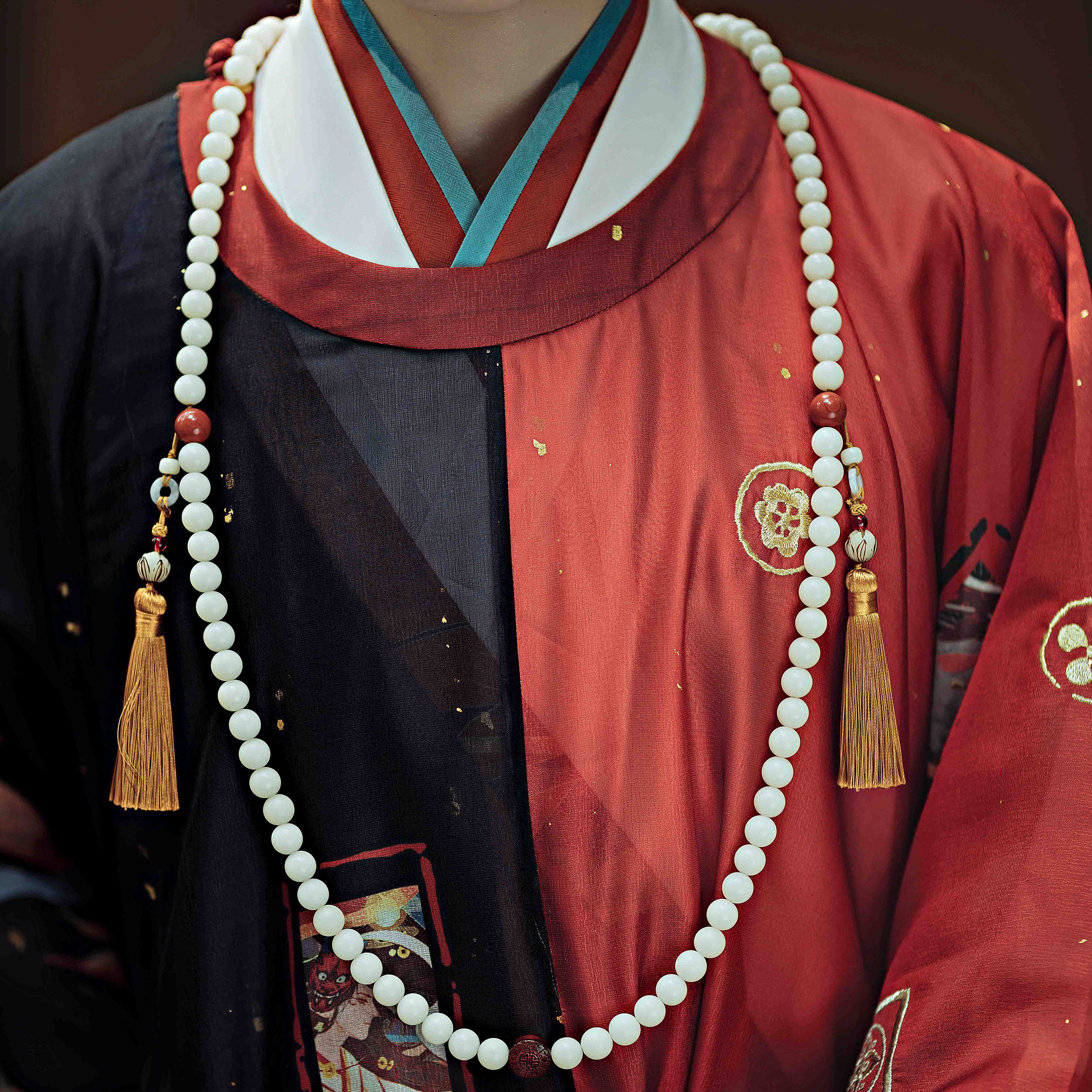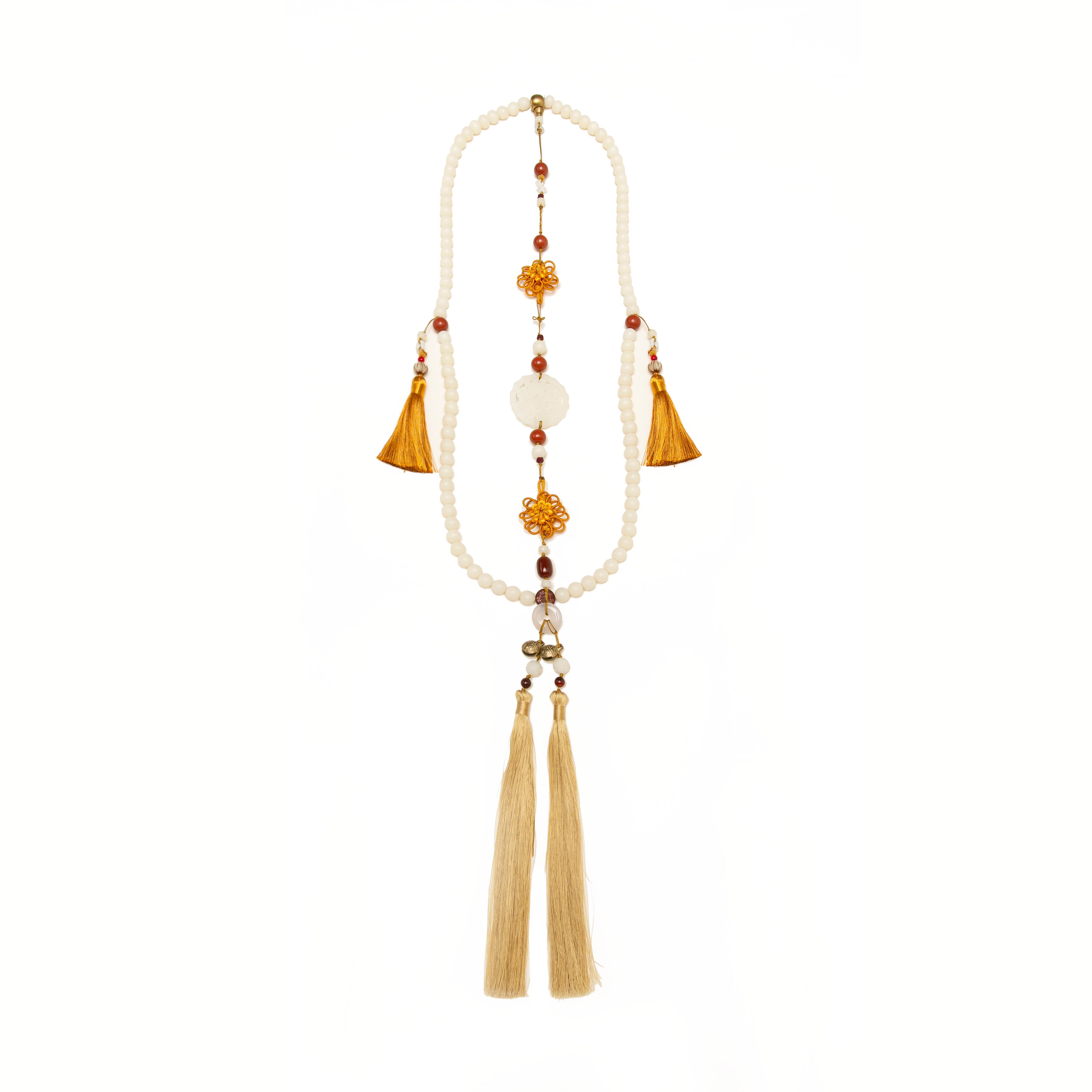 Han Feng Yin (no phase) the same back cloud Natural white jade Bodhi agate 108 strings of beaded Hanfu accessories