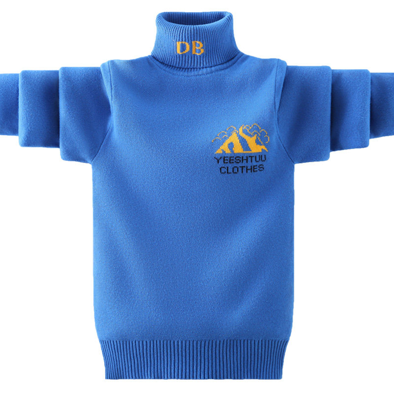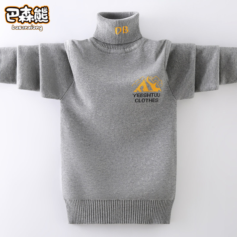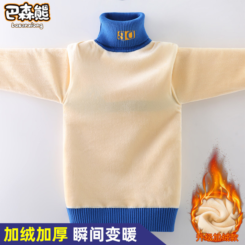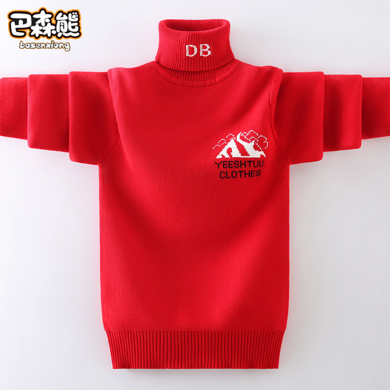 Boy sweater high collar 2022 new Child foreign pie undershirt red CUHK child plus velvet thickened autumn and winter