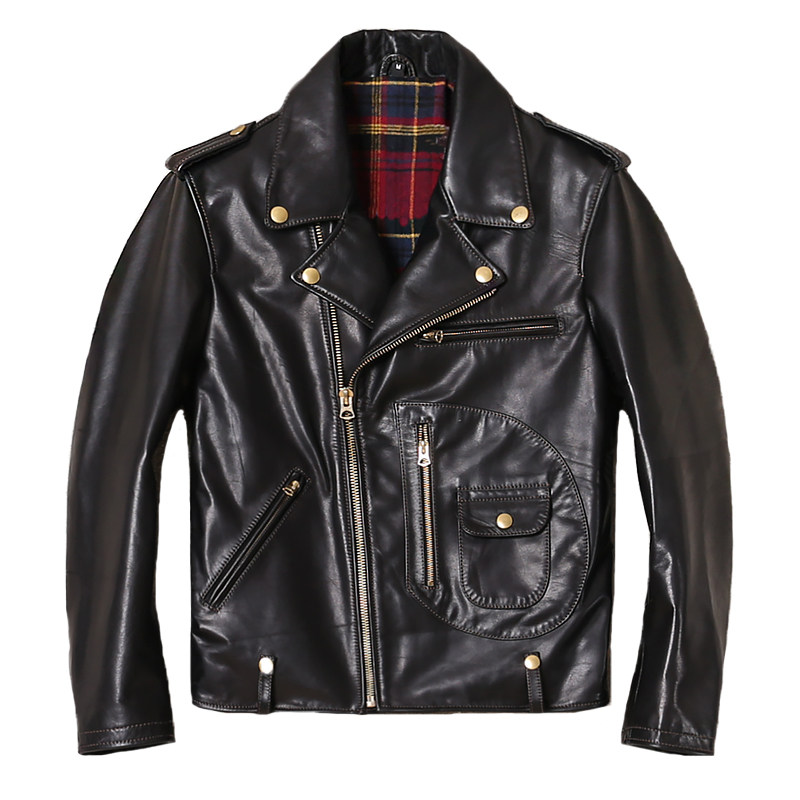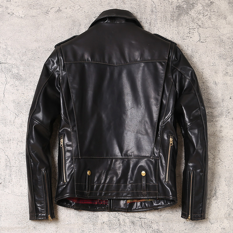 Real leather fur clothing men's oil wax marpi fashion personality locomotive clothes leather jacket head layer leather material handsome leather jacket tide
