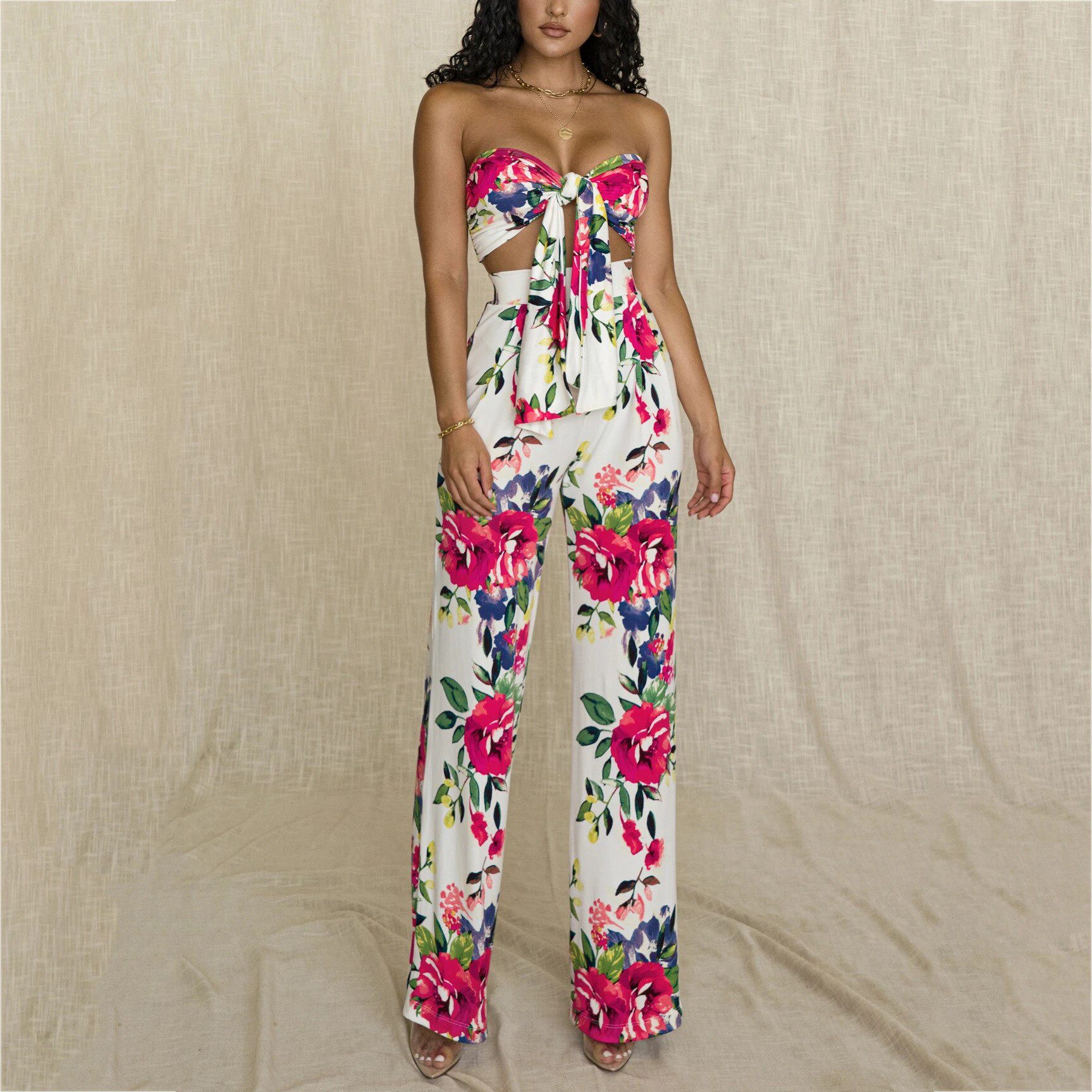 Sexy printed lace-up tube top and trousers two-piece suitwomen