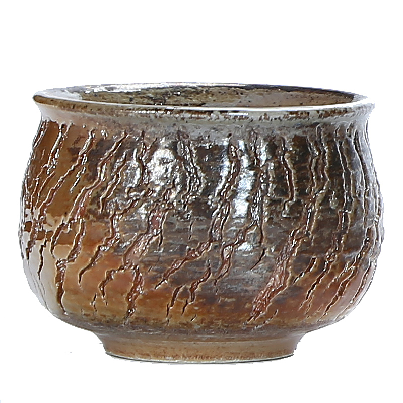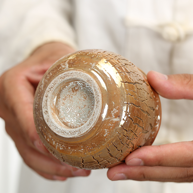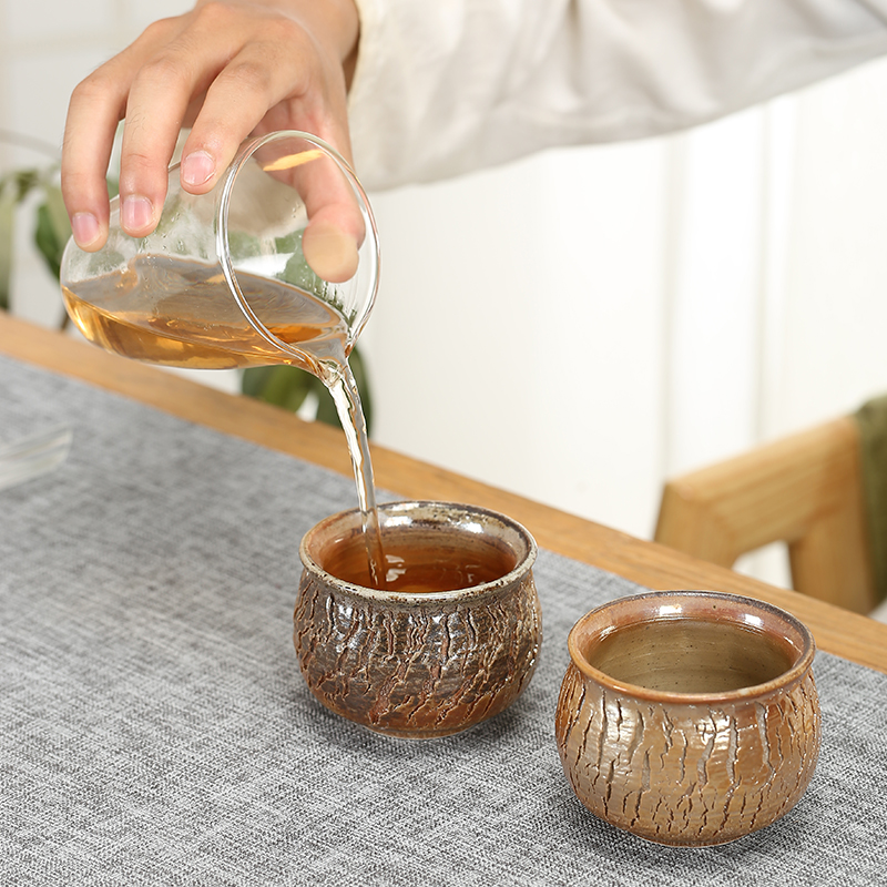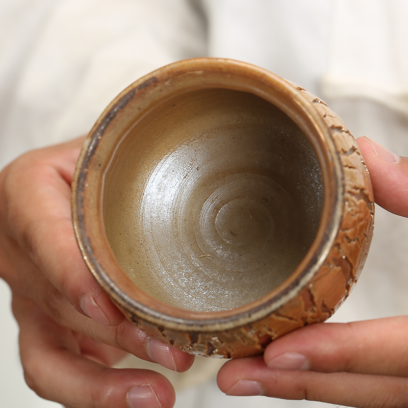 Gu Pin hand works Teacup wood burning hand pull blank teacup Large vintage handmade master cup coarse ceramic burst pattern