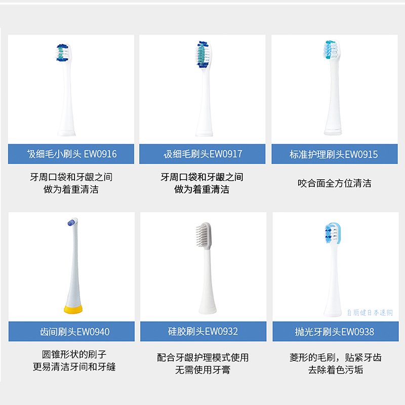 EW0800 (White)Ultra-fine soft hair small brush head EW0800 (black) Ultra-fine soft hair small brush head EW0801 (white)Ultra-fine soft hair large brush head EW0801(Black) Ultra-fine soft hair