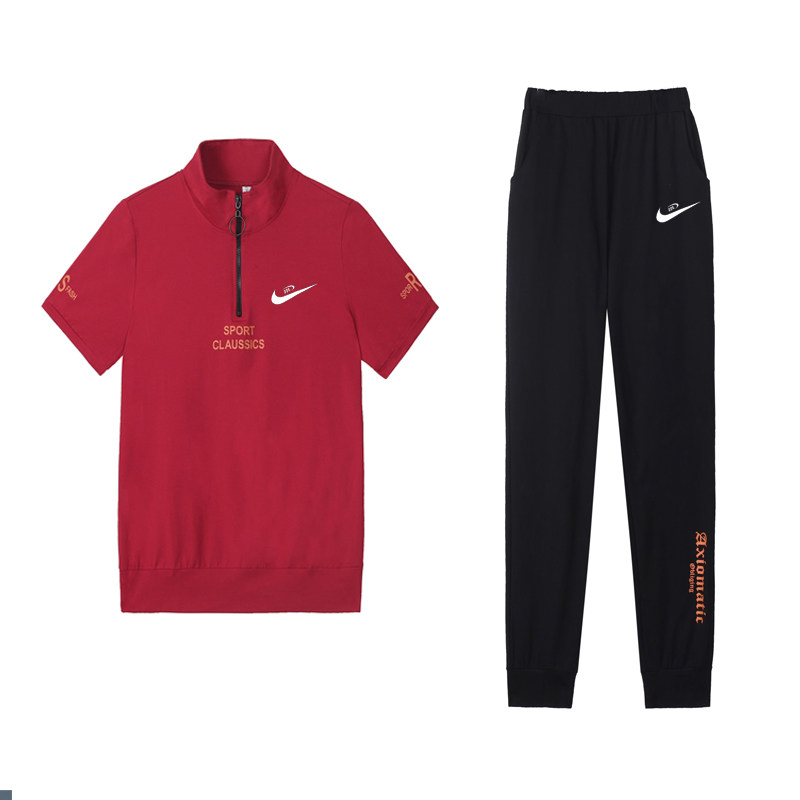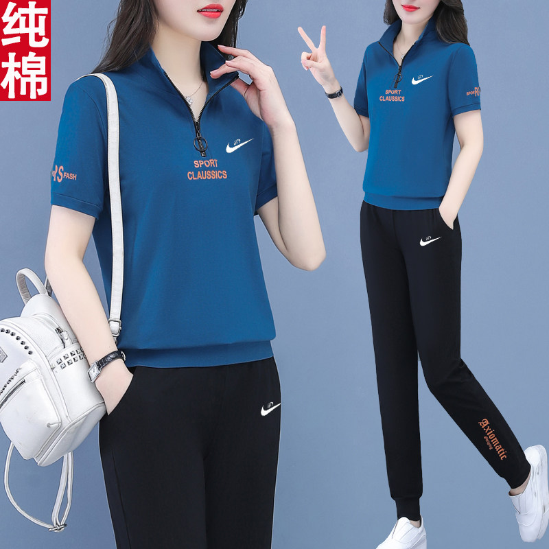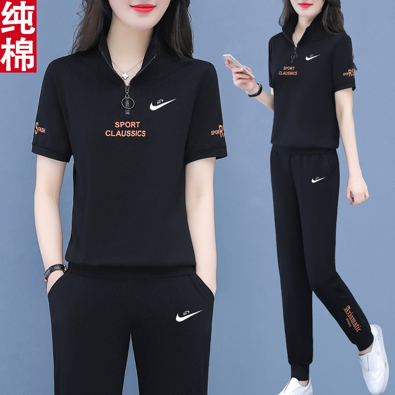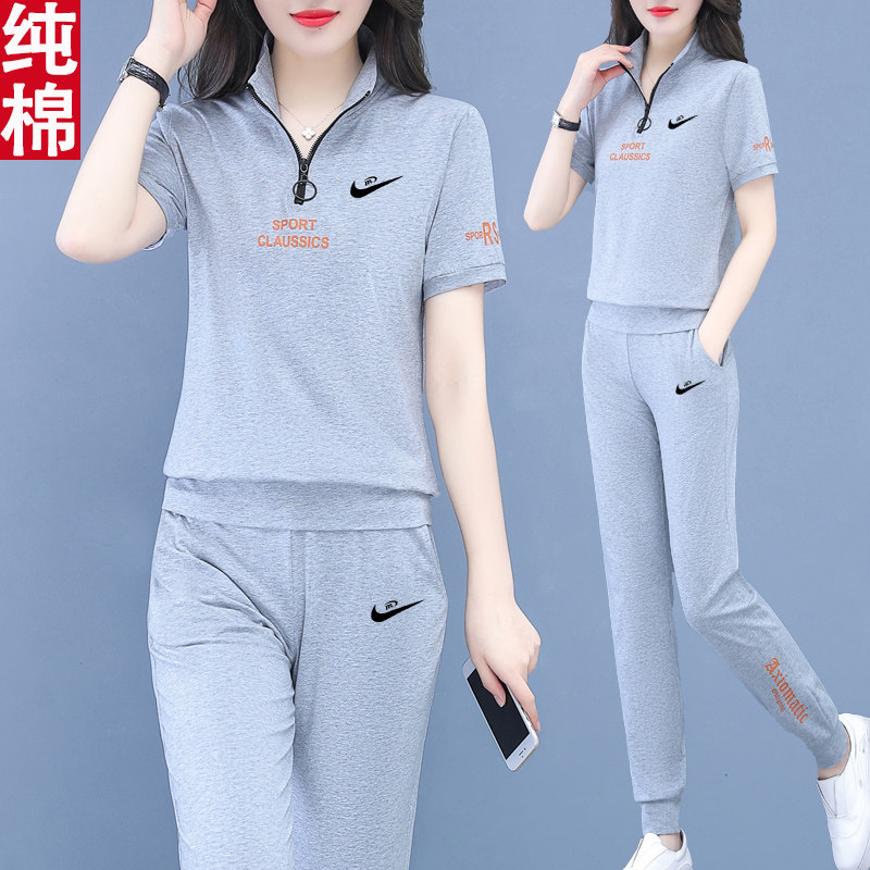 Nike Ton Sports Suit Women 2022 New Summer Loose Color slim pure cotton short sleeves Long pants casual clothes Two sets