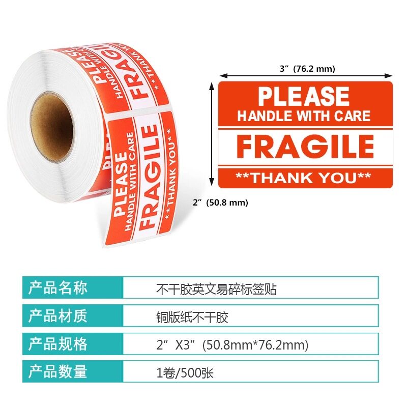 Copper paper warning sticker spot fragile self-adhesive label paper factory direct sales